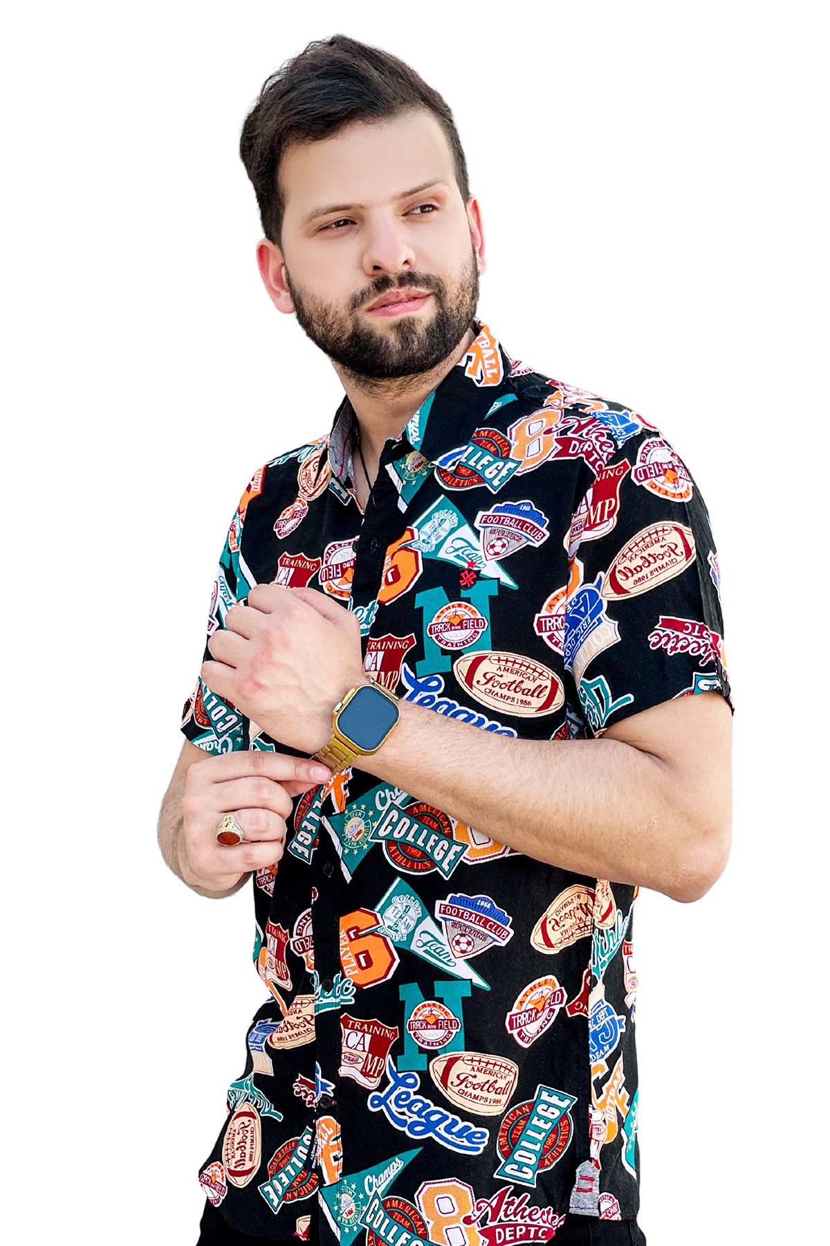 Introducing a burst of vibrant energy from Fashion Clubz: the Black Multi-Printed Colorful Linen Half Sleeve Shirt. Crafted to make a statement, this shirt combines comfort with eclectic style. Made from premium linen fabric, it offers a lightweight and breathable feel, ensuring comfort throughout the day. The dynamic multi-print design in a spectrum of colors adds a playful yet sophisticated touch, making it a standout piece in your collection. Whether you're out for a casual outing or a special event, this shirt effortlessly embodies individuality and contemporary flair. Elevate your wardrobe with Fashion Clubz and showcase your unique sense of style with confidence.