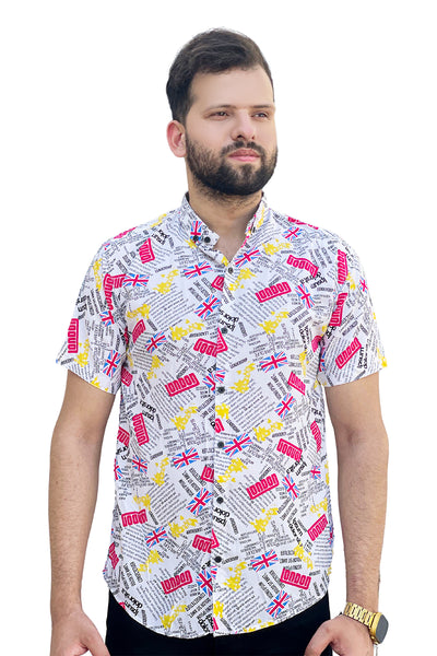 White london text printed shirt linen half sleeve