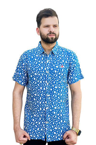 Blue stone texture linen printed half sleeve shirt