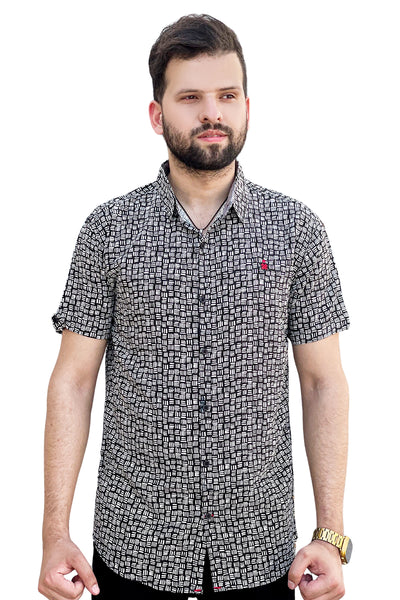 Black and white texture printed linen half sleeve shirt
