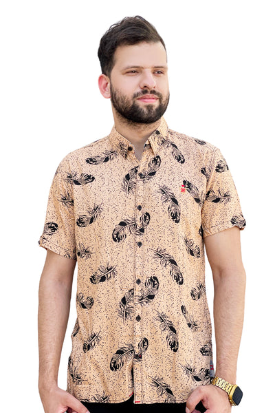 Skin leaves printed linen half sleeve shirt