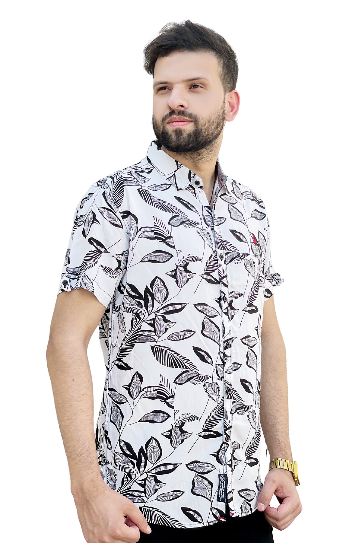 Introducing a refreshing addition to your wardrobe from Fashion Clubz: the White Leaves Printed Linen Half Sleeve Shirt. Crafted to bring a touch of nature's elegance to your ensemble, this shirt combines comfort with contemporary style. Made from premium linen fabric, it offers a breathable and lightweight feel, perfect for warmer days. The delicate leaves print in white adds a subtle yet striking visual appeal, infusing your look with a hint of sophistication. Whether you're strolling along the beach or meeting friends for brunch, this shirt effortlessly embodies laid-back charm and refined taste. Elevate your casual attire with Fashion Clubz and embrace a newfound sense of style.