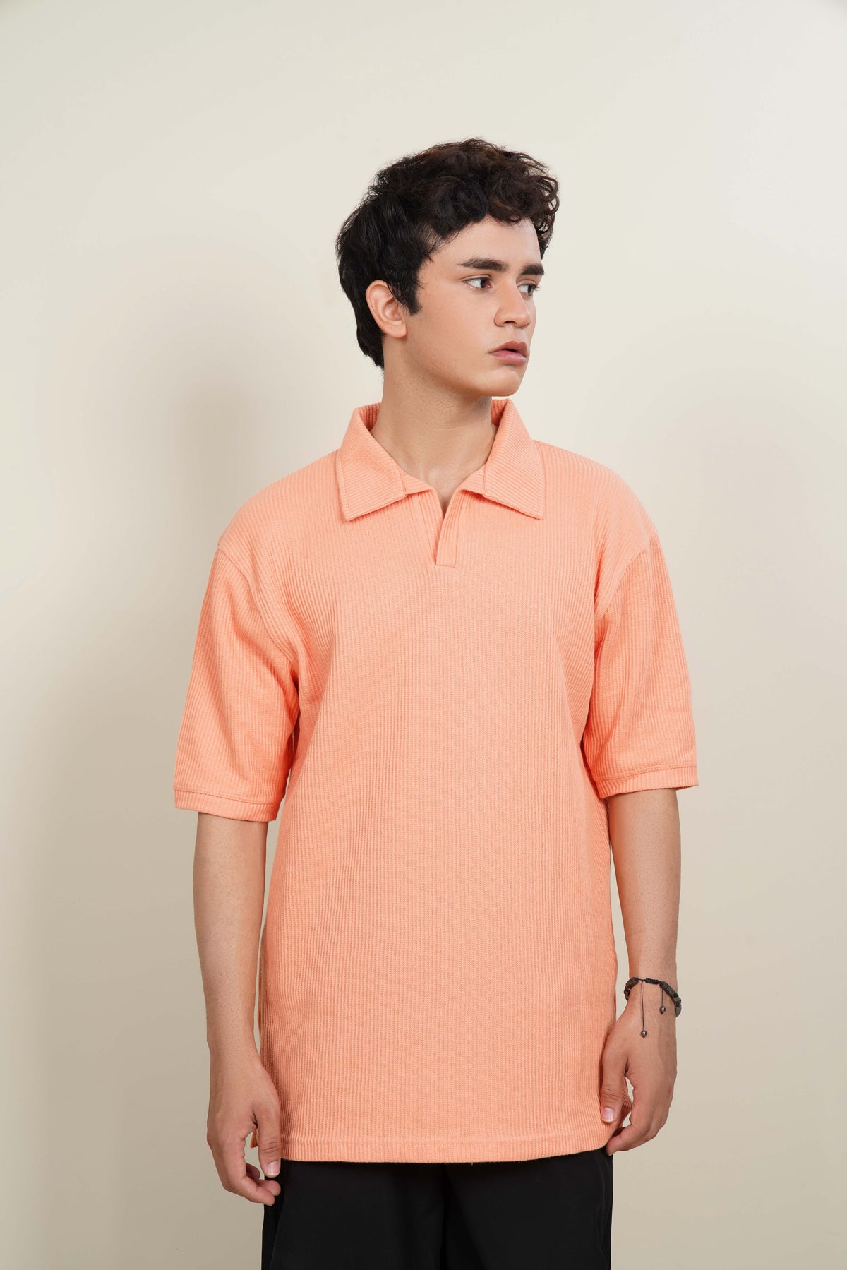 ribbed knit polo shirt with half sleeves and Comfortable, casual, and versatile for everyday wear.