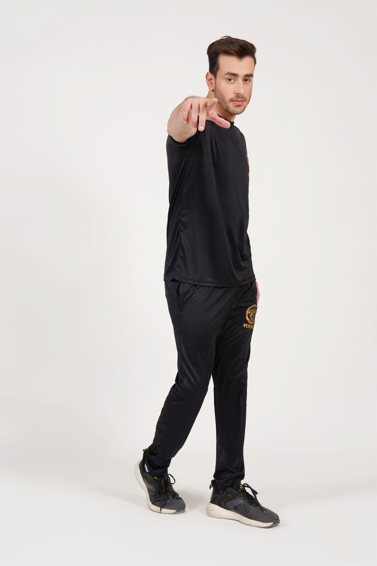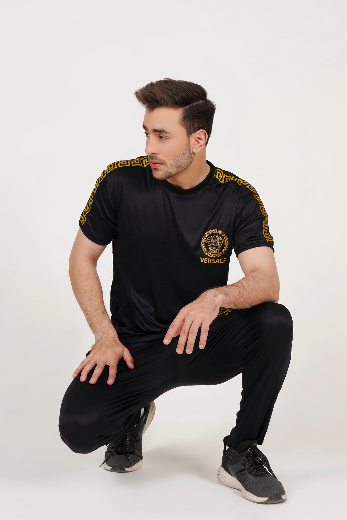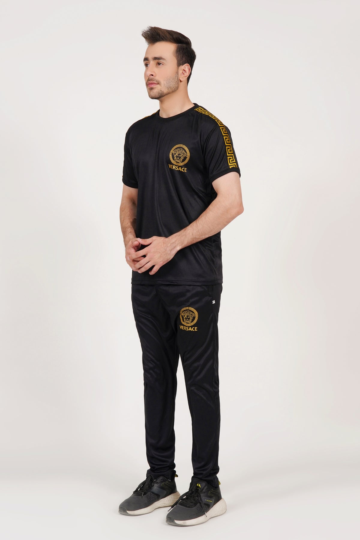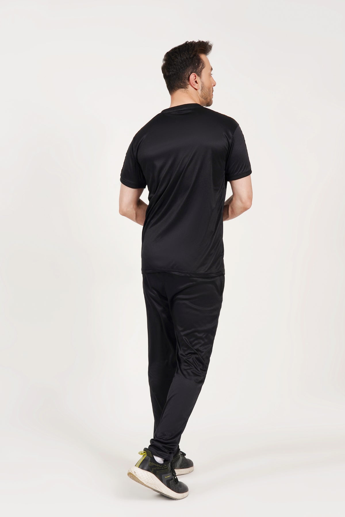 Fabric : micro interlock colour : blackDiscription : shirt half sleeves trouser : stechable slim fit model height is 5.10