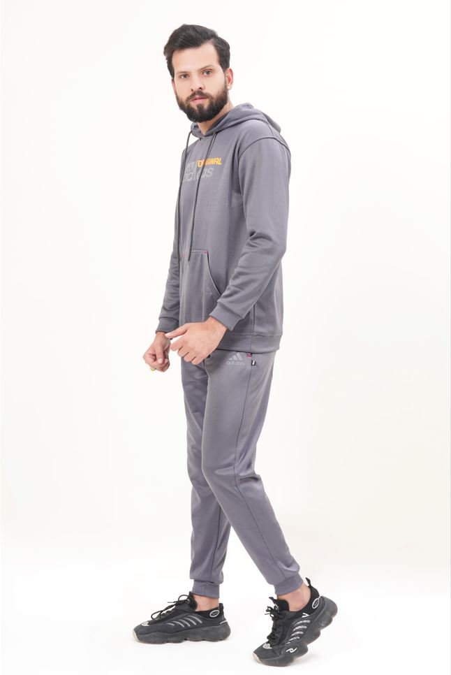 The regular fit tracksuit is made of high quality materials. Cotton hoodie detailed with front contrasting logo lettering print, kangaroo pocket and ribbed cuffs and hem. Rib on trouser , sleeves and hoddie , Fits just right - not too tight, not too loose.