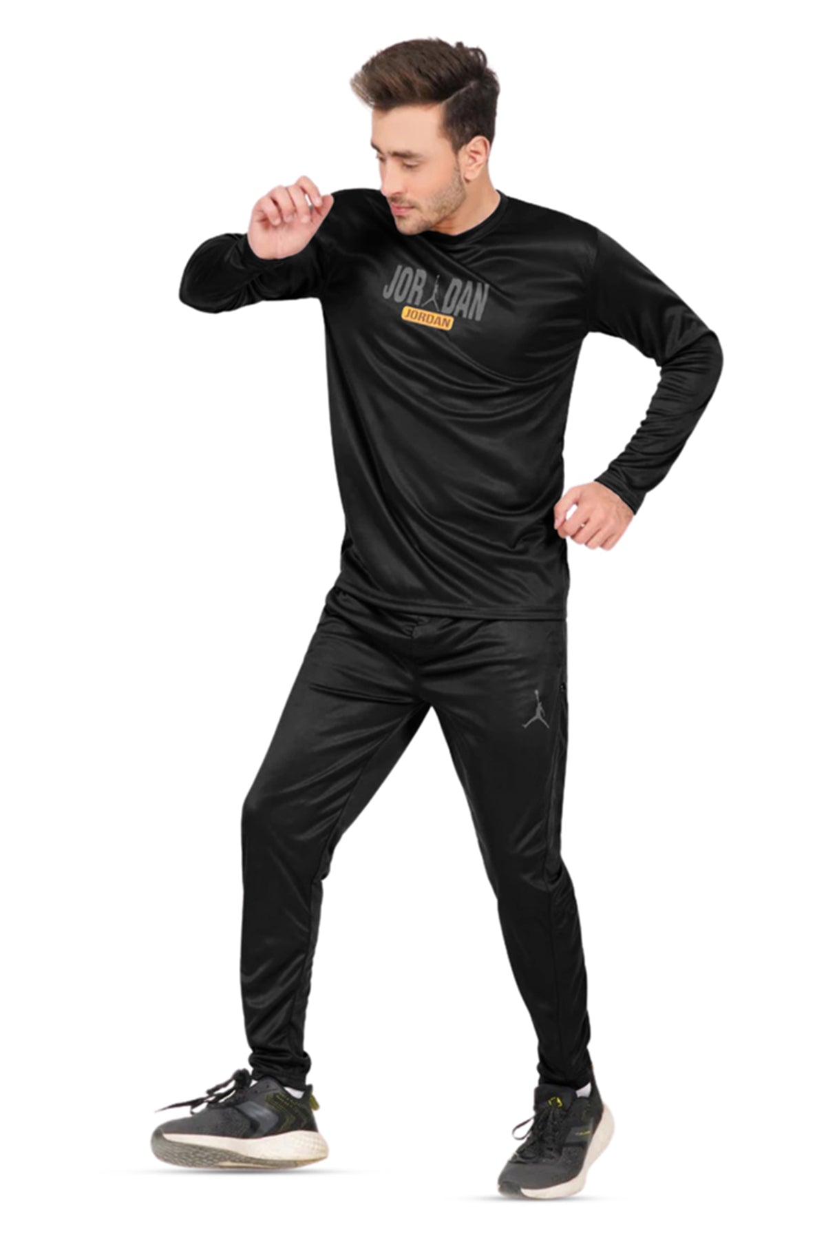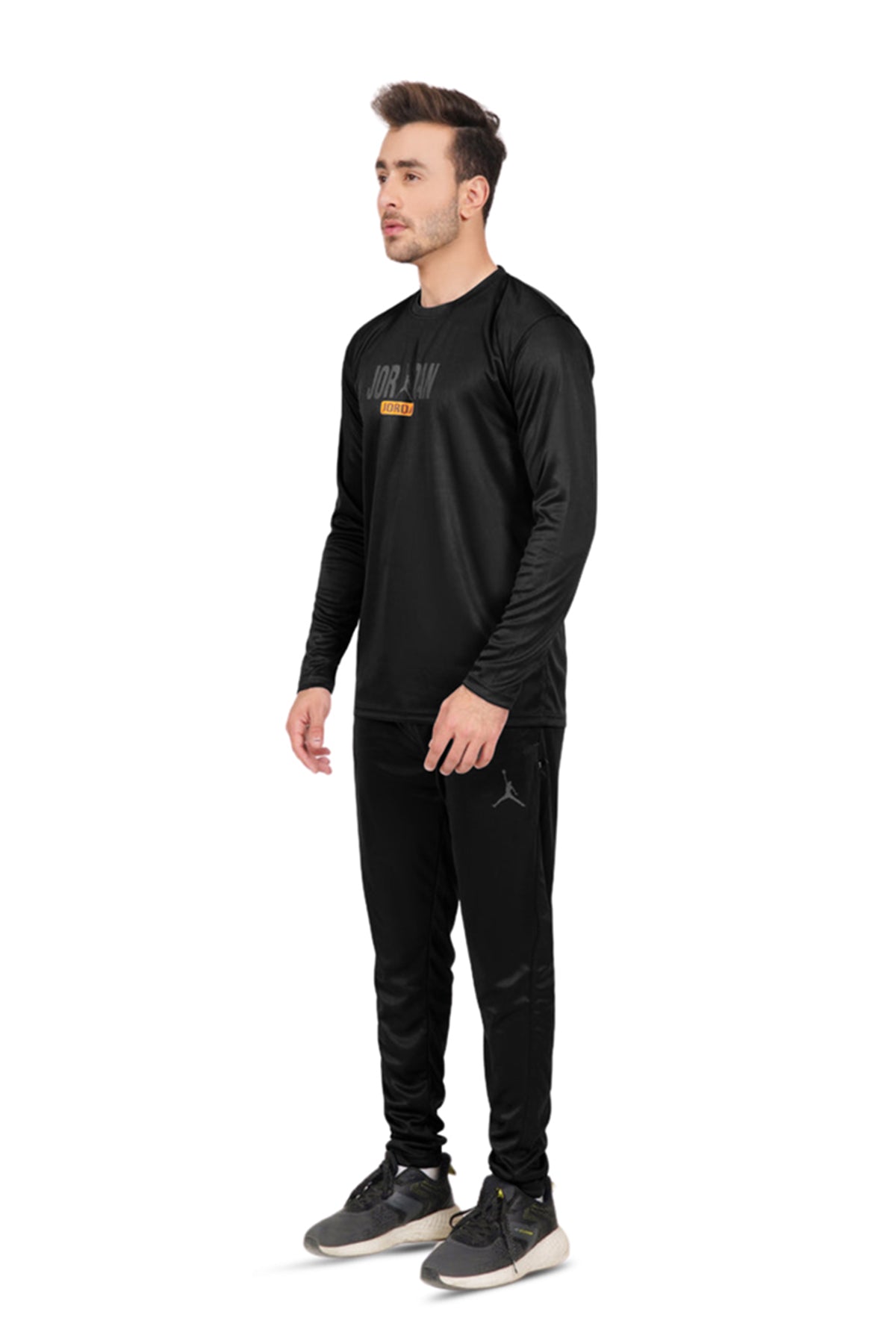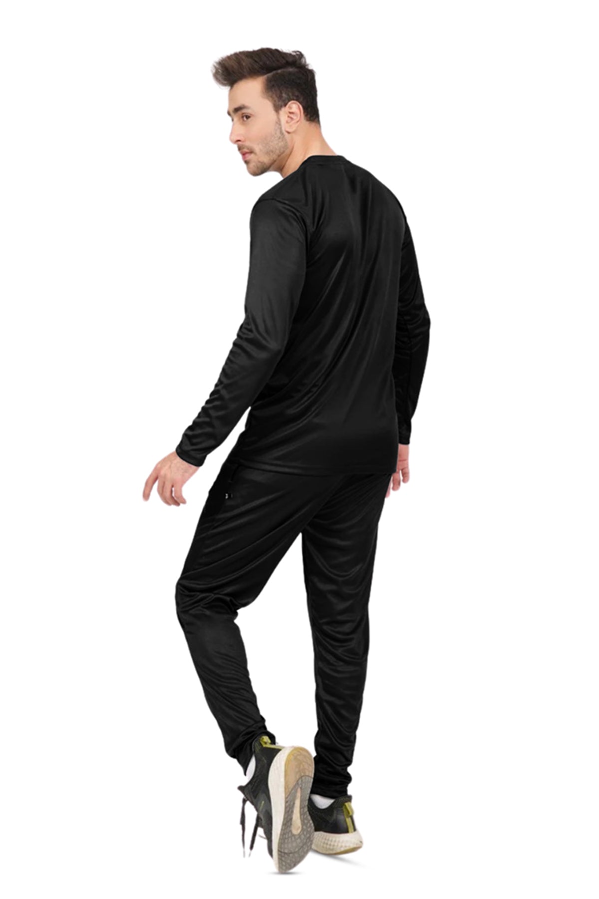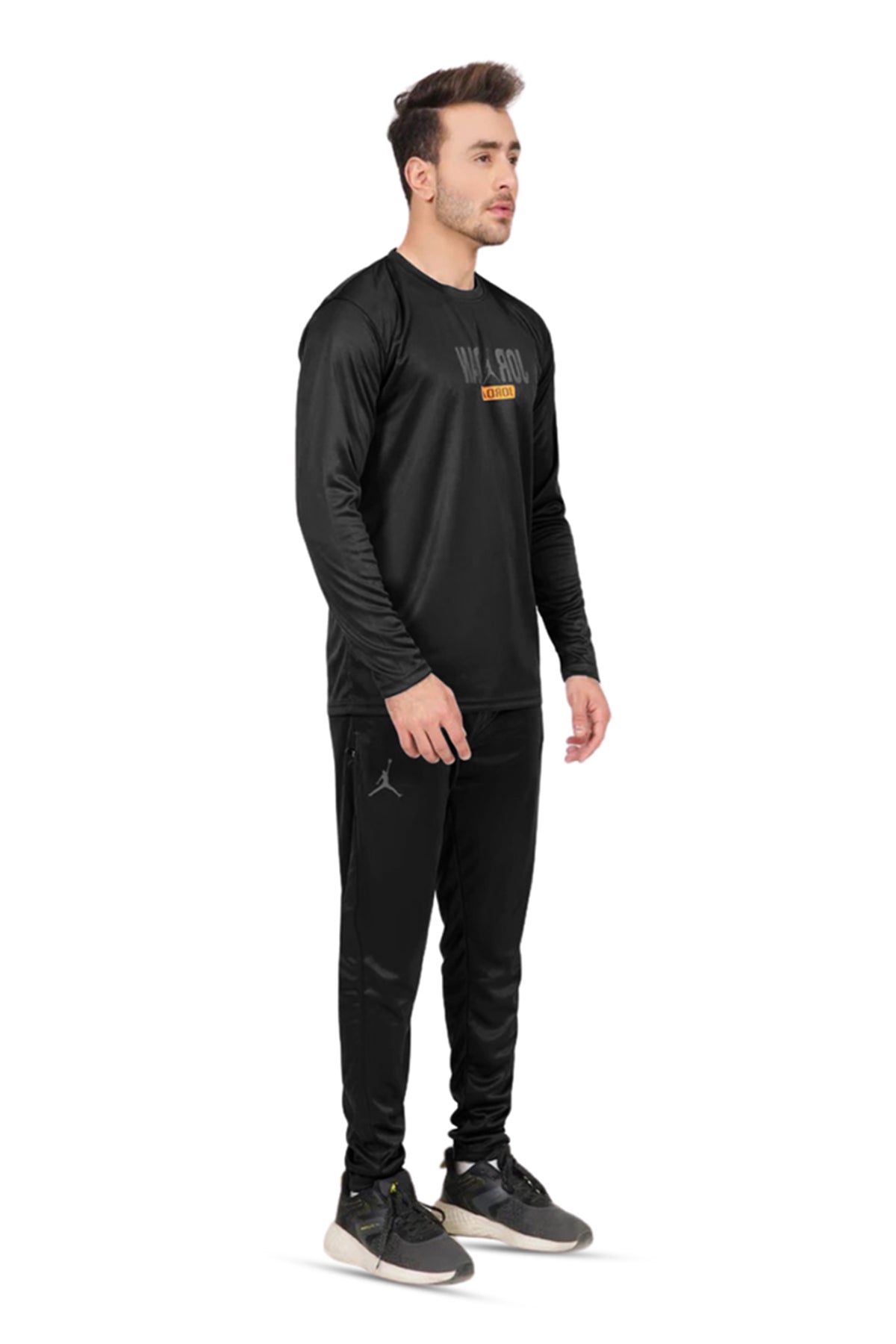 fabric: micro interlock track suit Discription:shirt full sleeves Trouser : Stechable slim fit model height is 5.10 Colour : Black