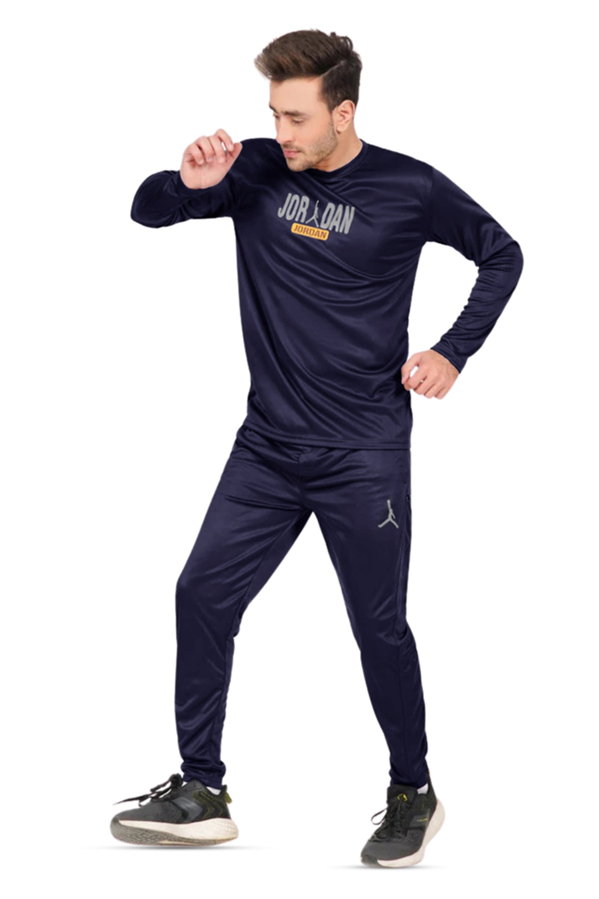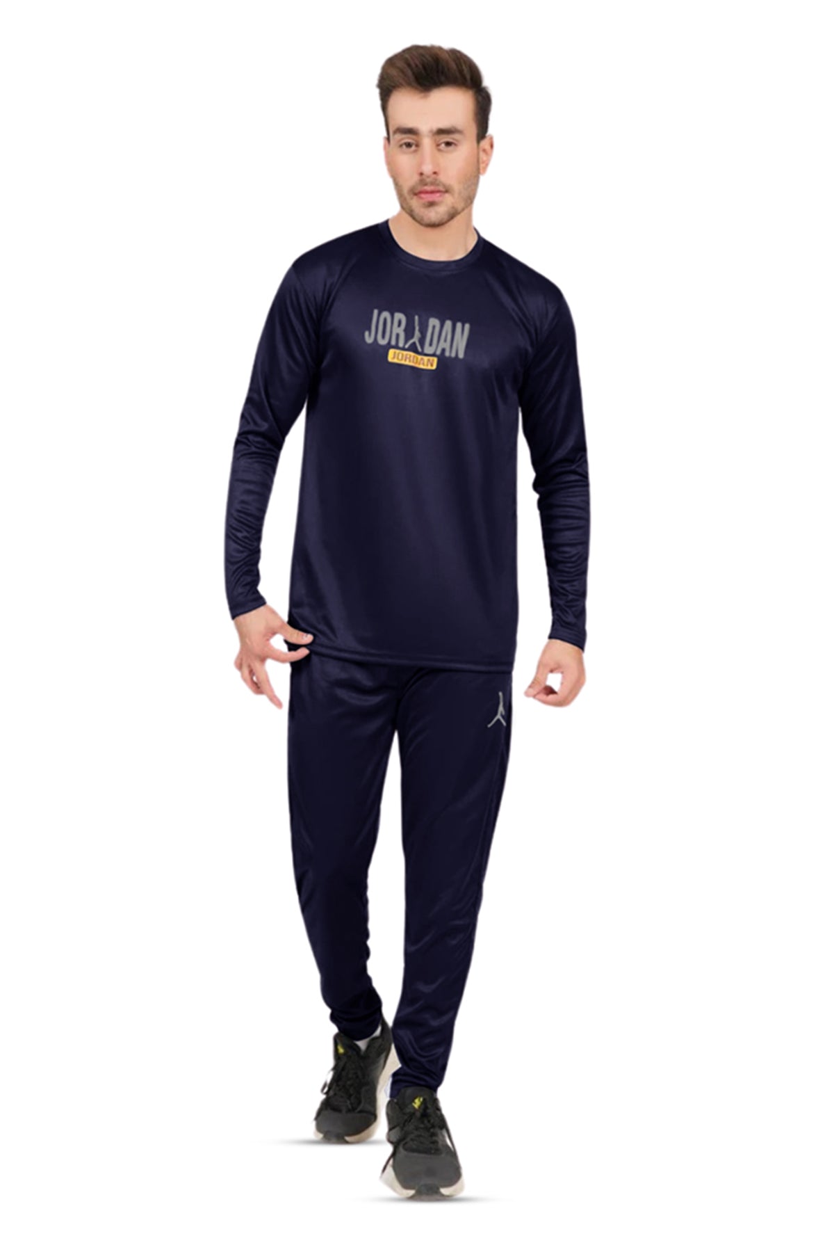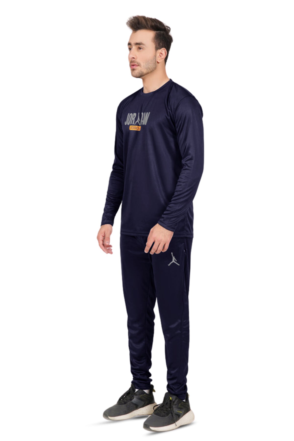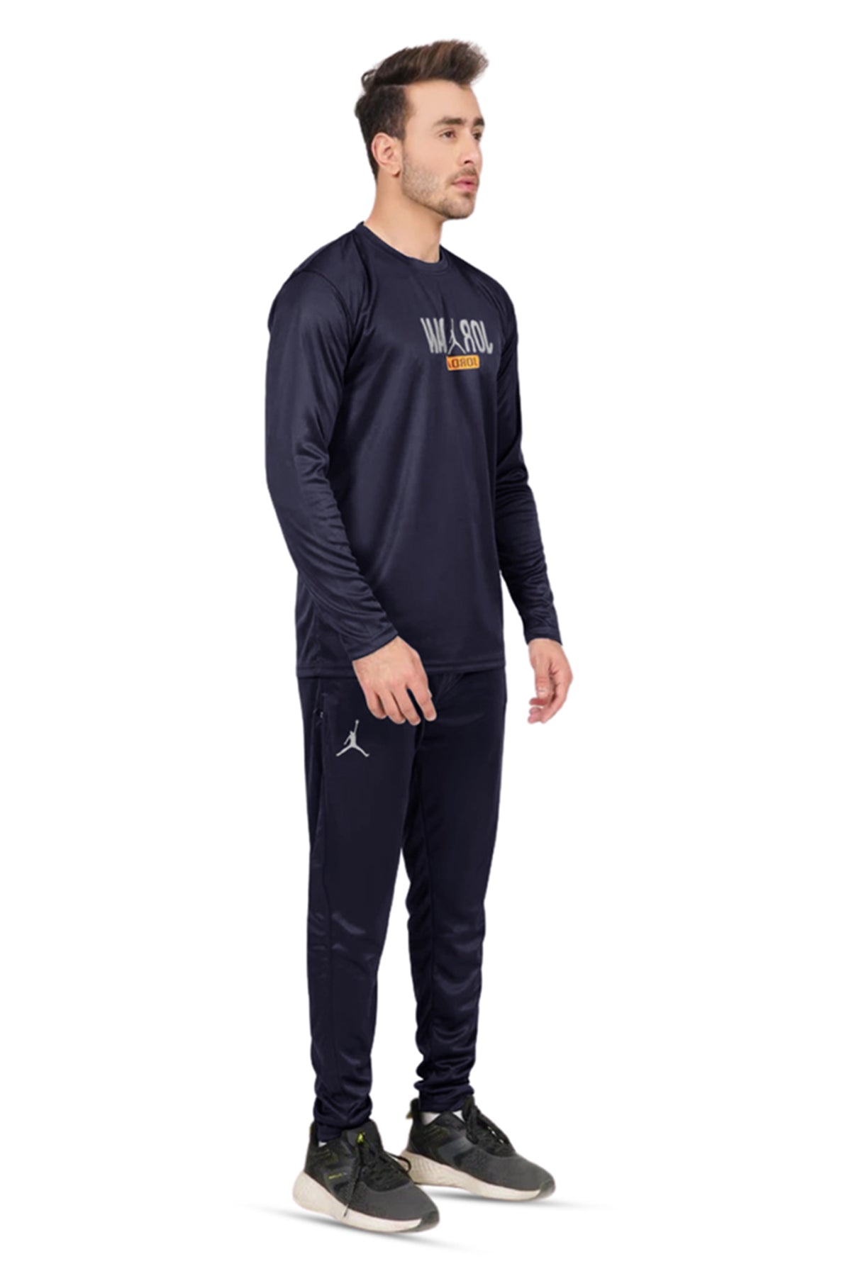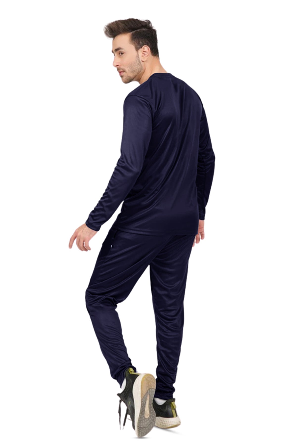 fabric: micro interlock track suit Discription:shirt full sleeves Trouser : Stechable slim fit model height is 5.10 Colour : Dark Blue