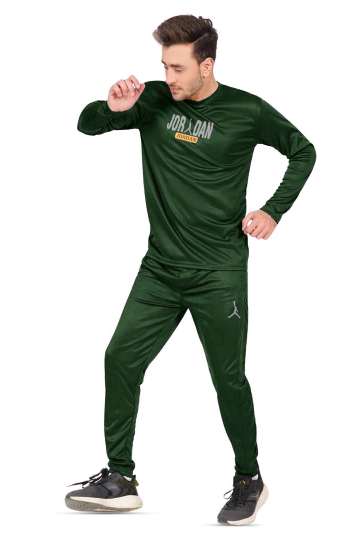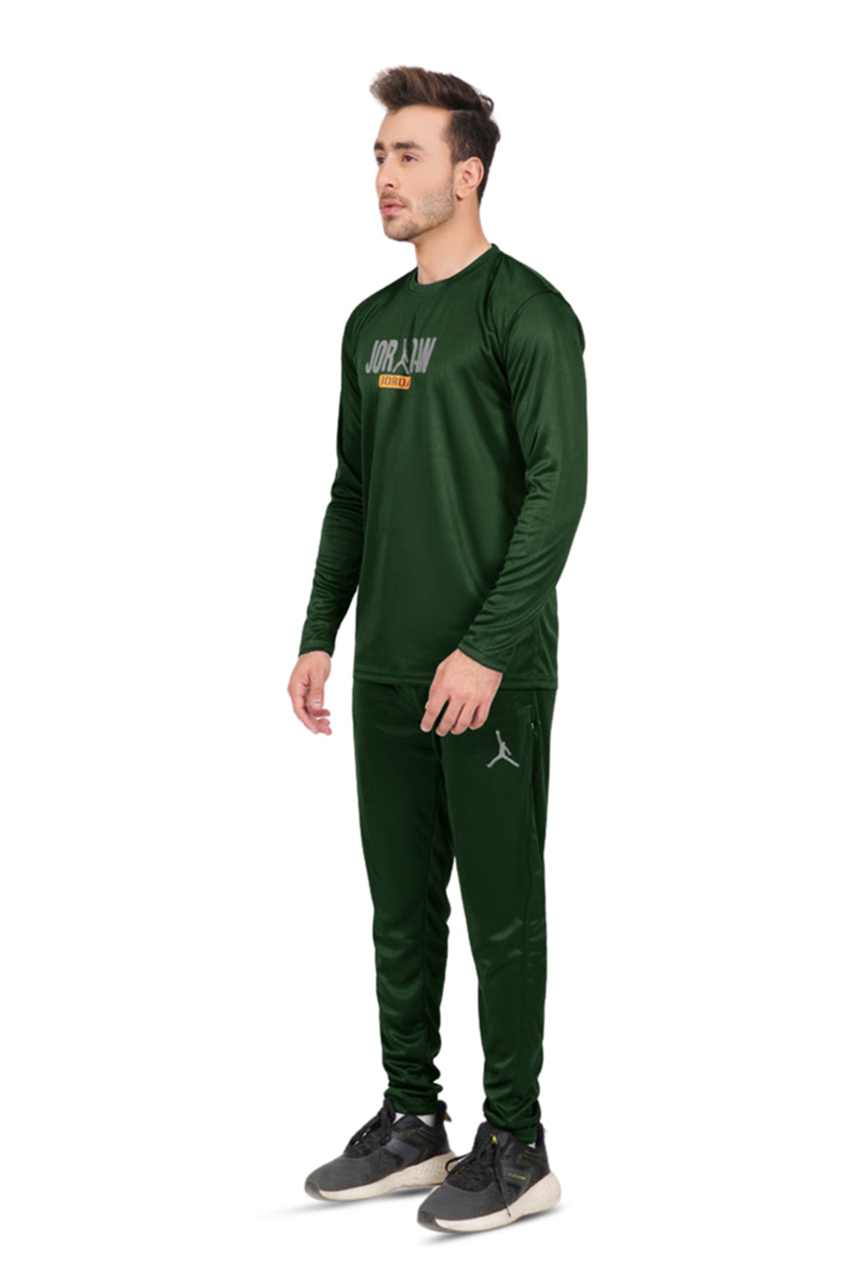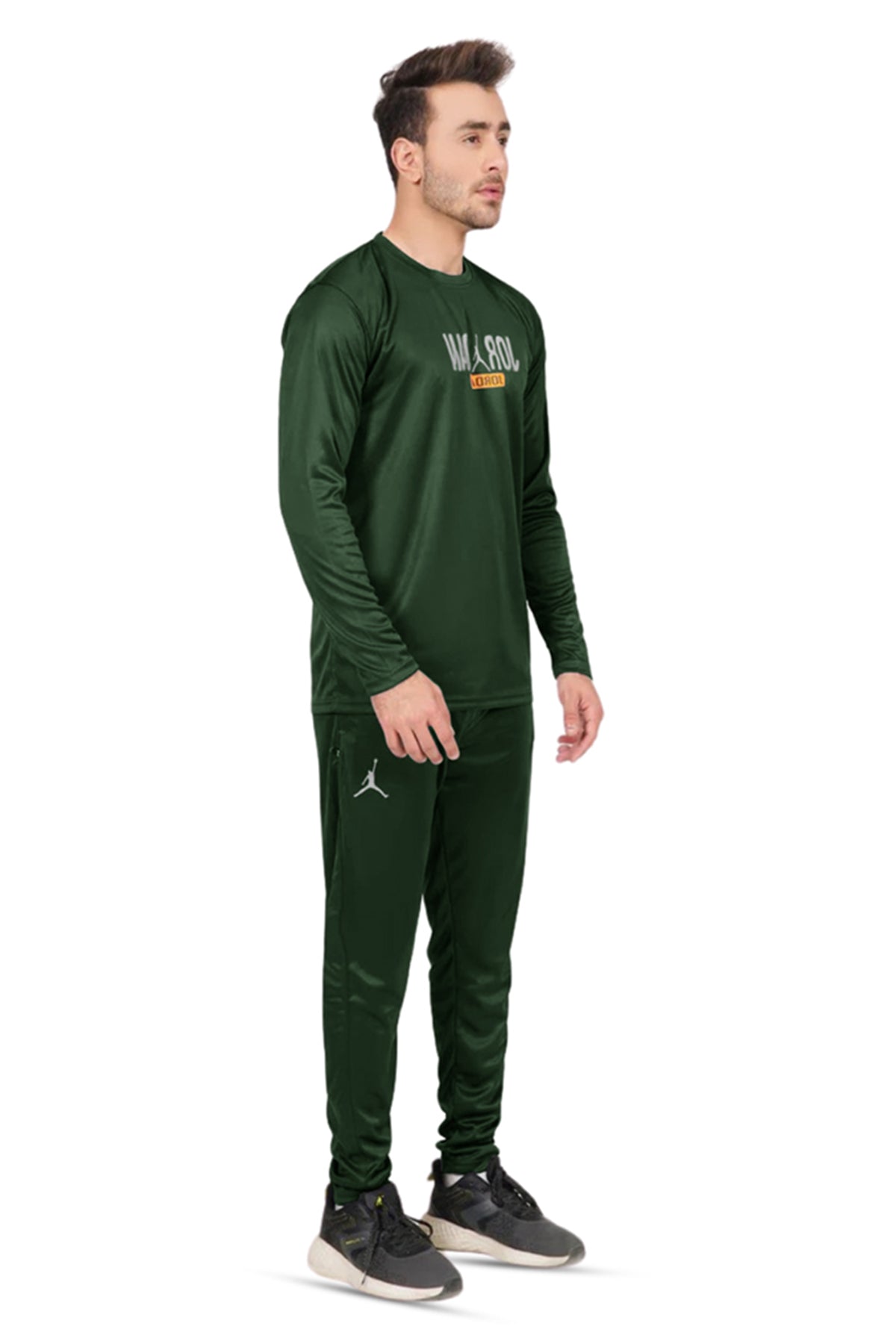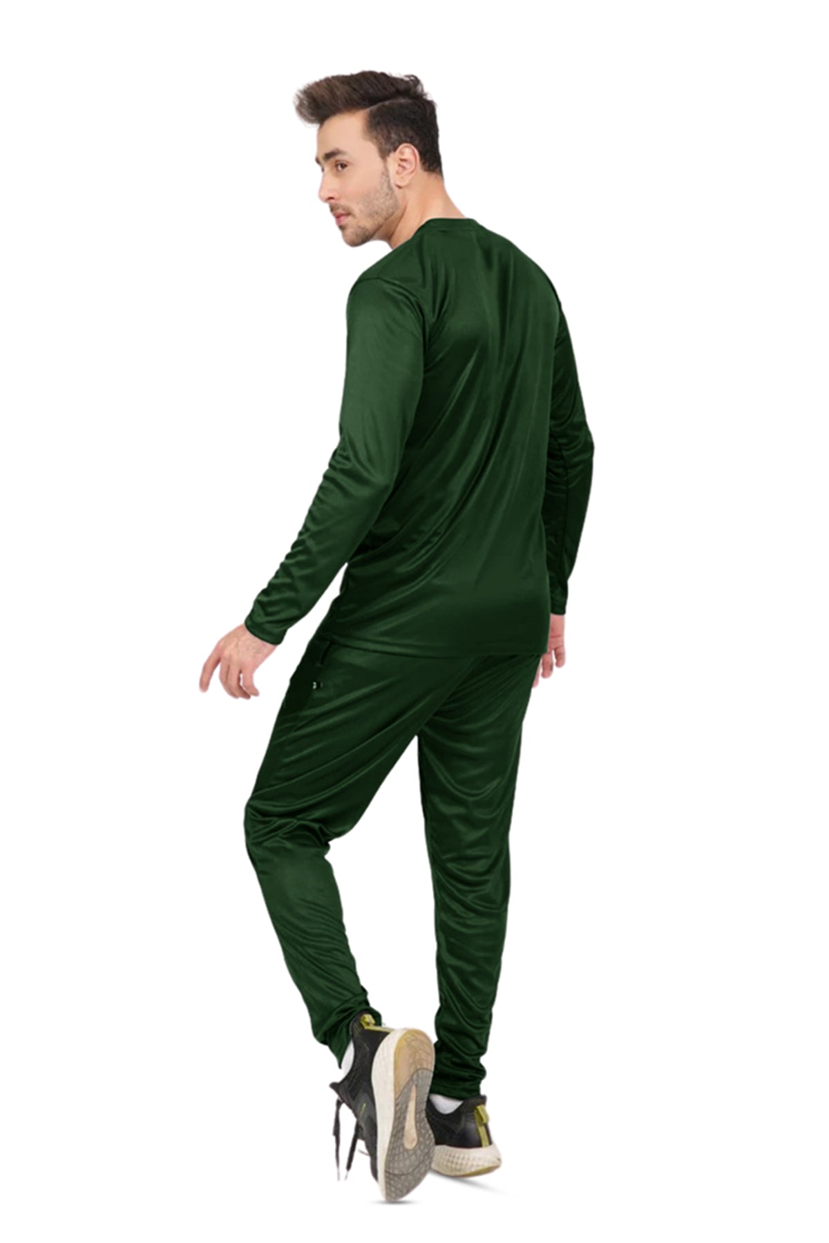 fabric: micro interlock track suit Discription:shirt full sleeves Trouser : Stechable slim fit model height is 5.10 Colour : Dark Green