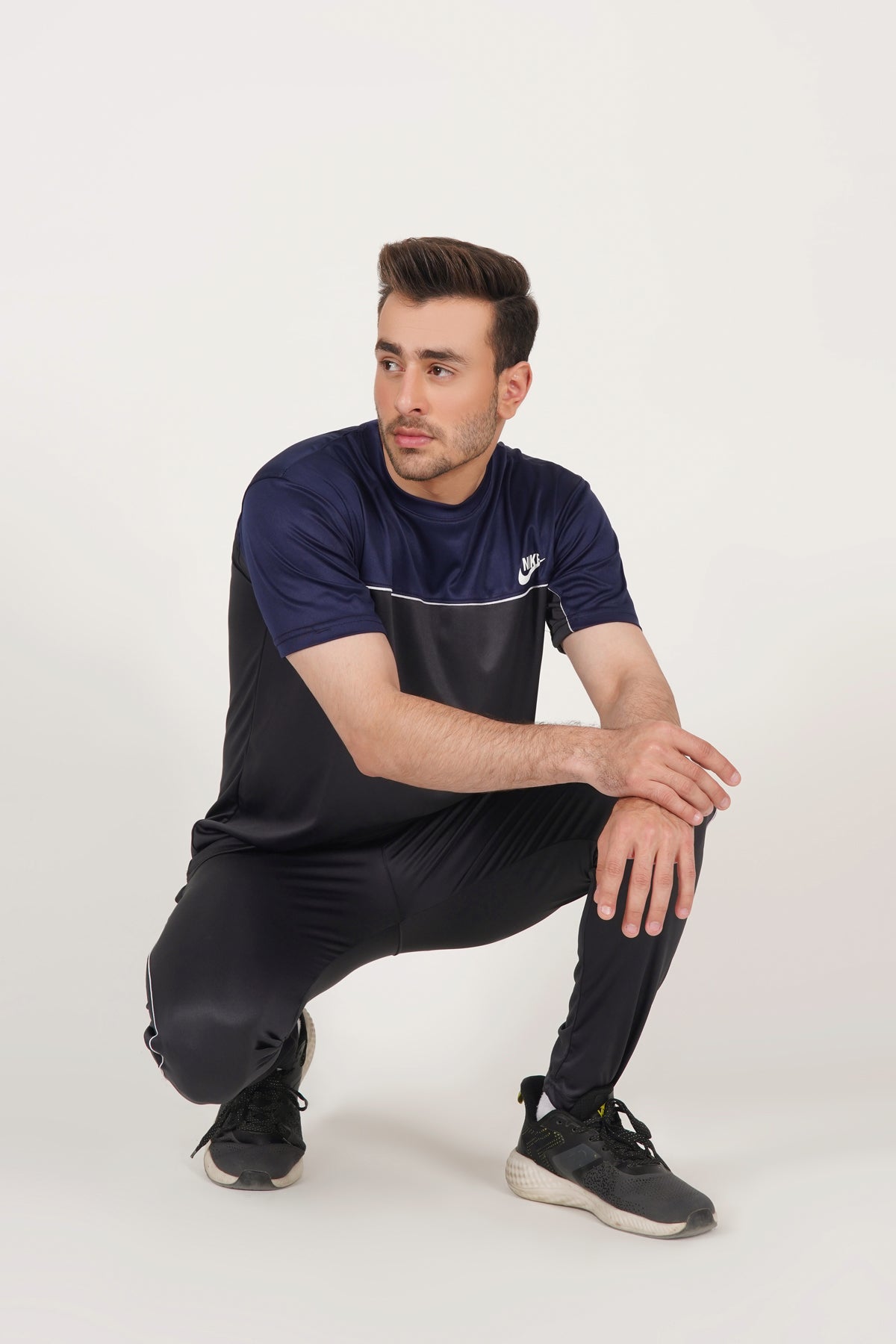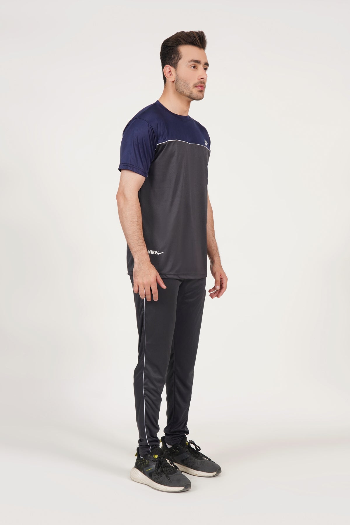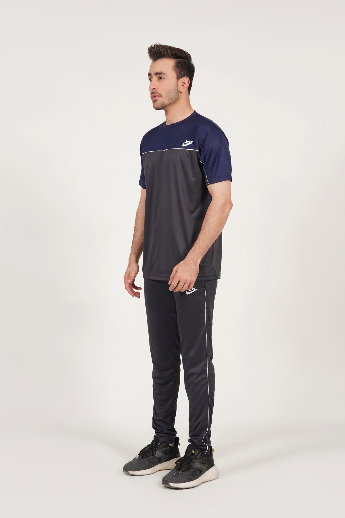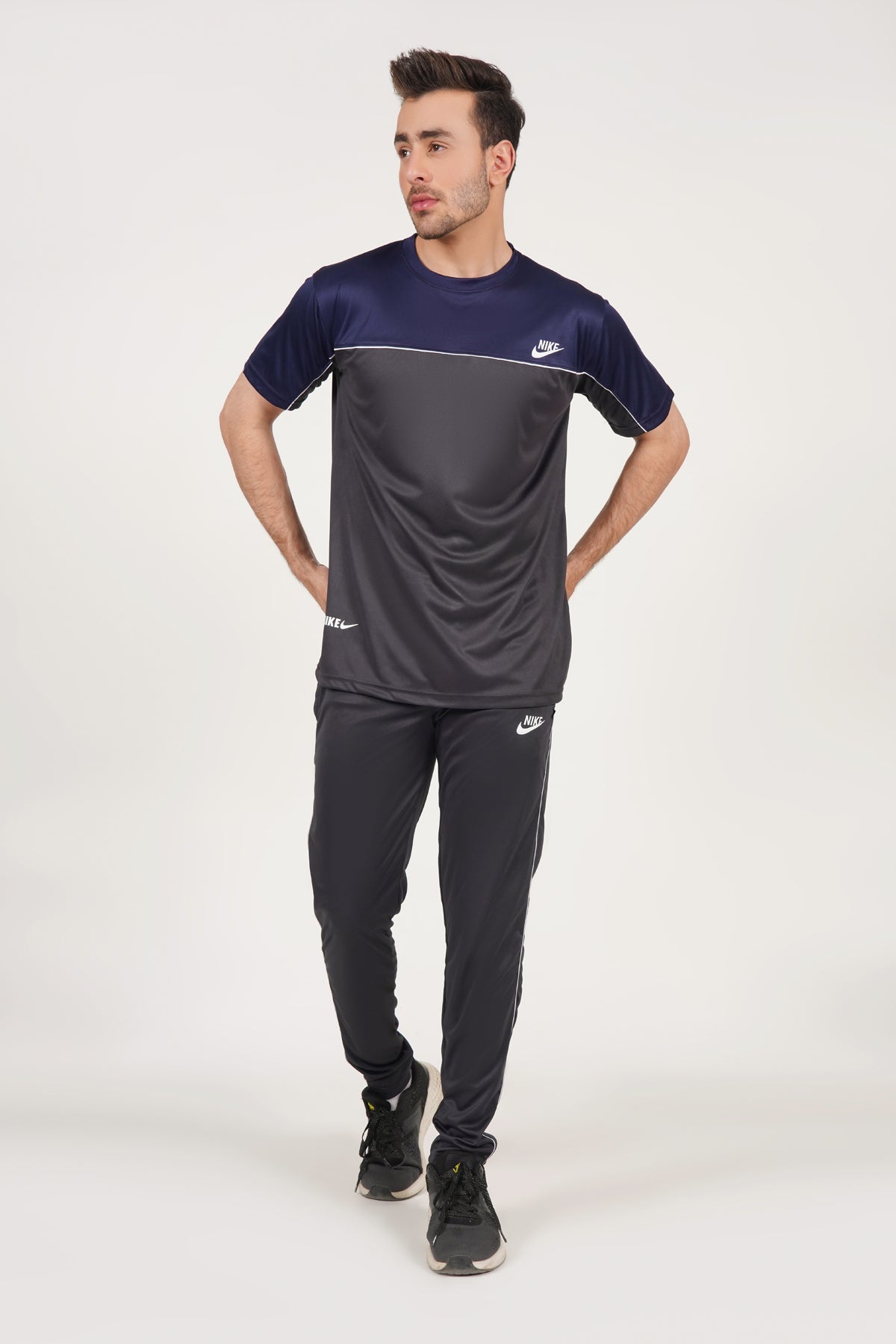 Fabric : micro interlock colour : grey blue Discription : shirt half sleeves trouser : stechable slim fit model height is 5.10